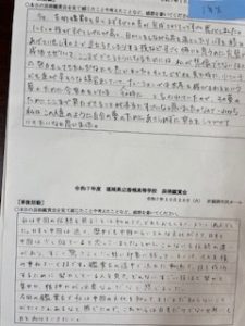 香椎高校から1年生と2年生の感想文をいただきました。拝読して、私たちが公演に託す思いと、学校が生徒に期待する効果が見事にマッチした感想のオンパレードでした。生徒のみなさんはこの作品の意義をよく理解してくれている、とても嬉しい感想文でした。